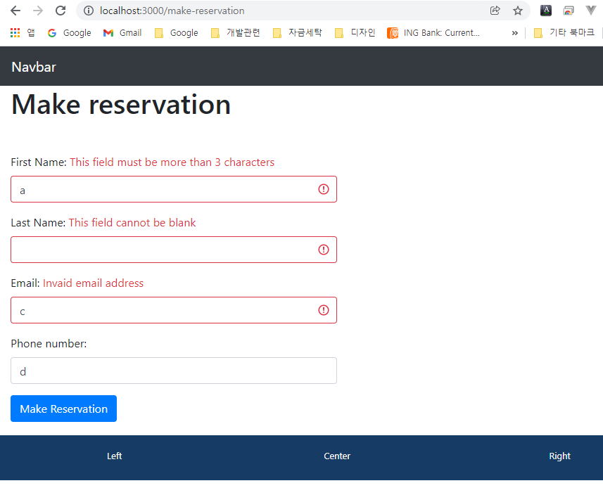 - 이메일은 @ 및 . 조건이 충족해야 하므로 오류 발생한 경우