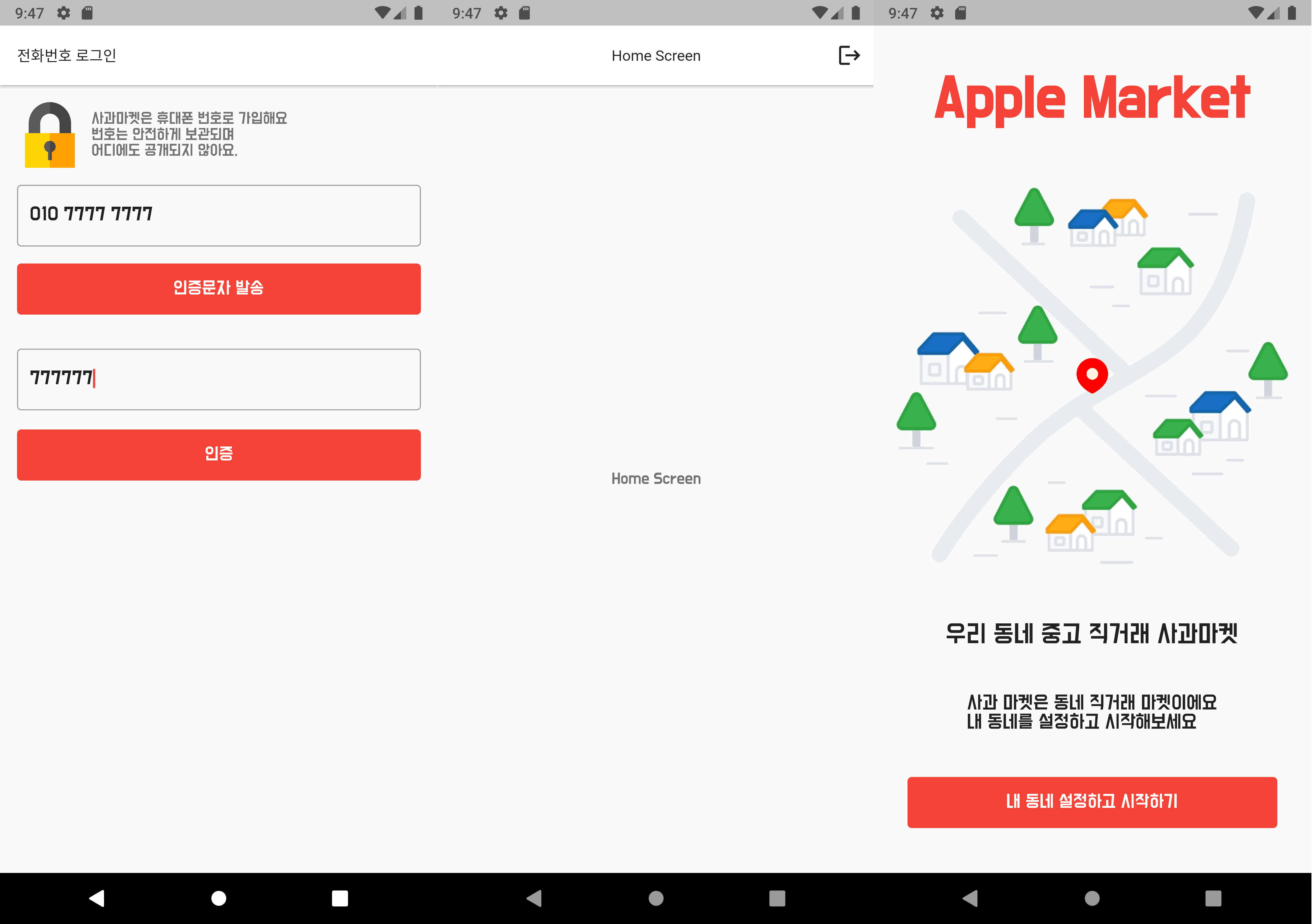 지난번에 auth page 에서 인증 성공후 Home Screen 으로 이동하는 기능을 추가했습니다.
