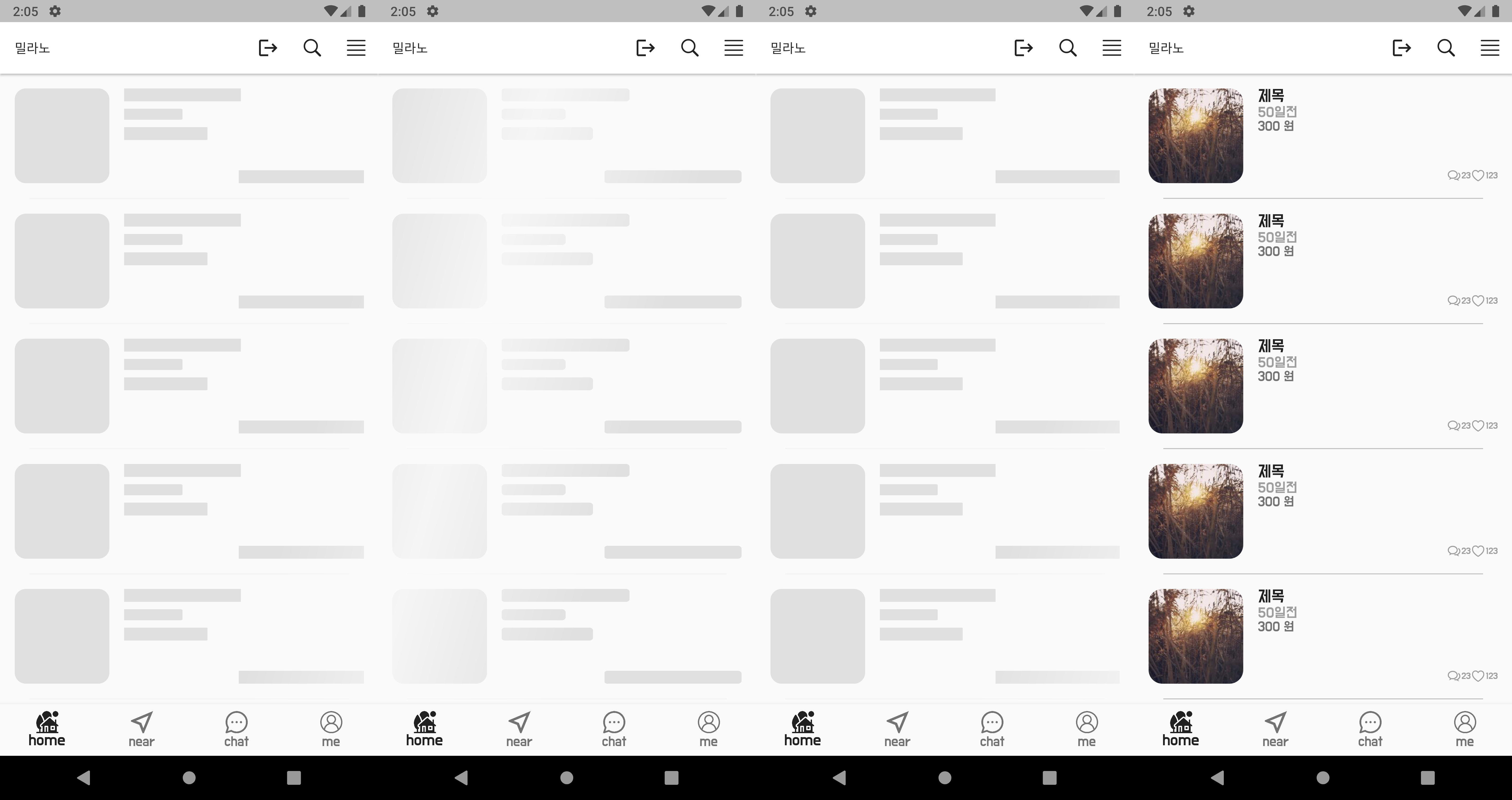 FutureBuilder 를 이용하여 5초동안 shimmer 가 보여지고 이후에는 정상 데이터가 보여진다.