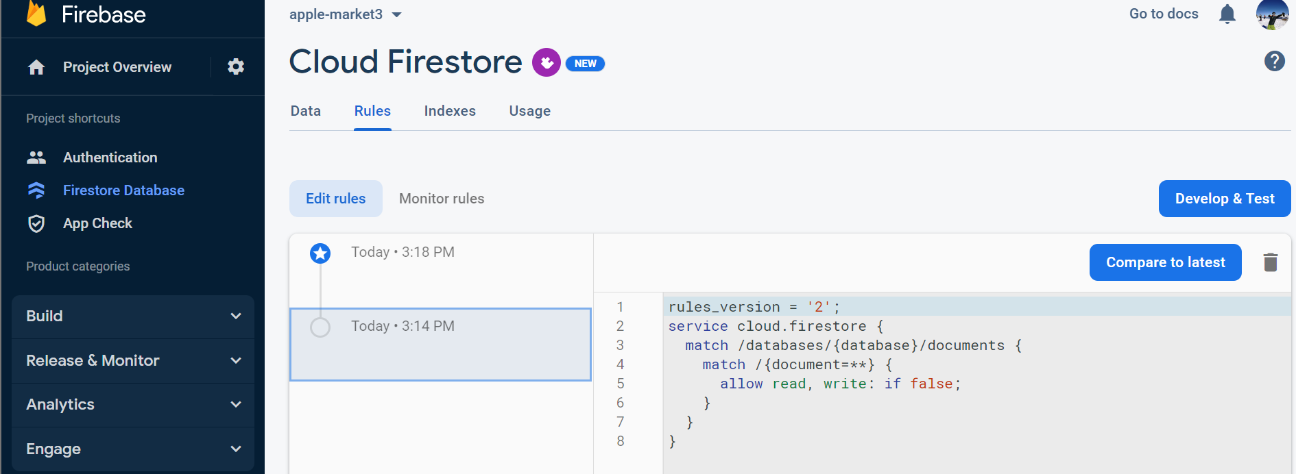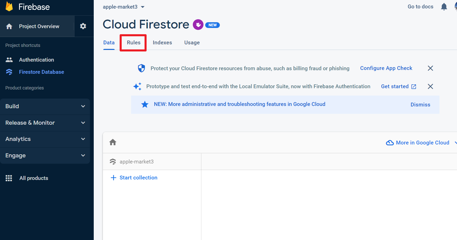 Firestore 생성을 위한 준비 - production mode 로 생성 시작
