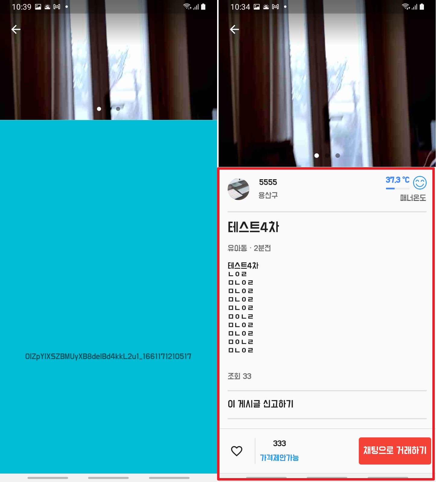 2. 아이템 상세 정보(글제목, 카테고리, 상세내용, 신고버튼 등)