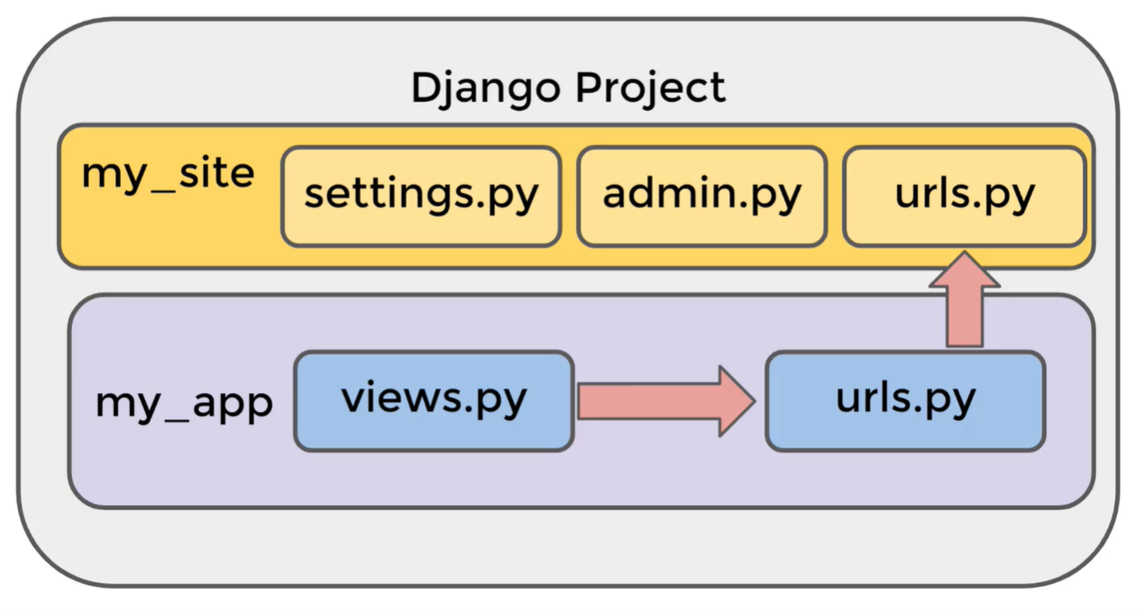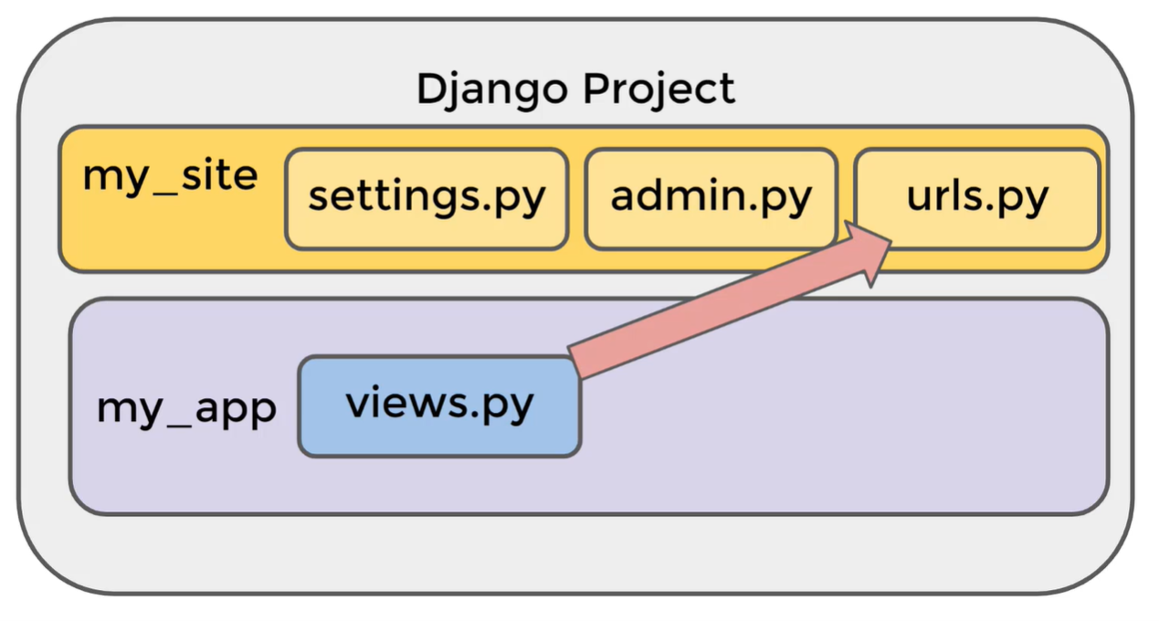 my_app 하위의 views.py 파일이 자동 생성되는데, 이 파일은 웹사이트의 특정 페이지와 같은 개념이다.