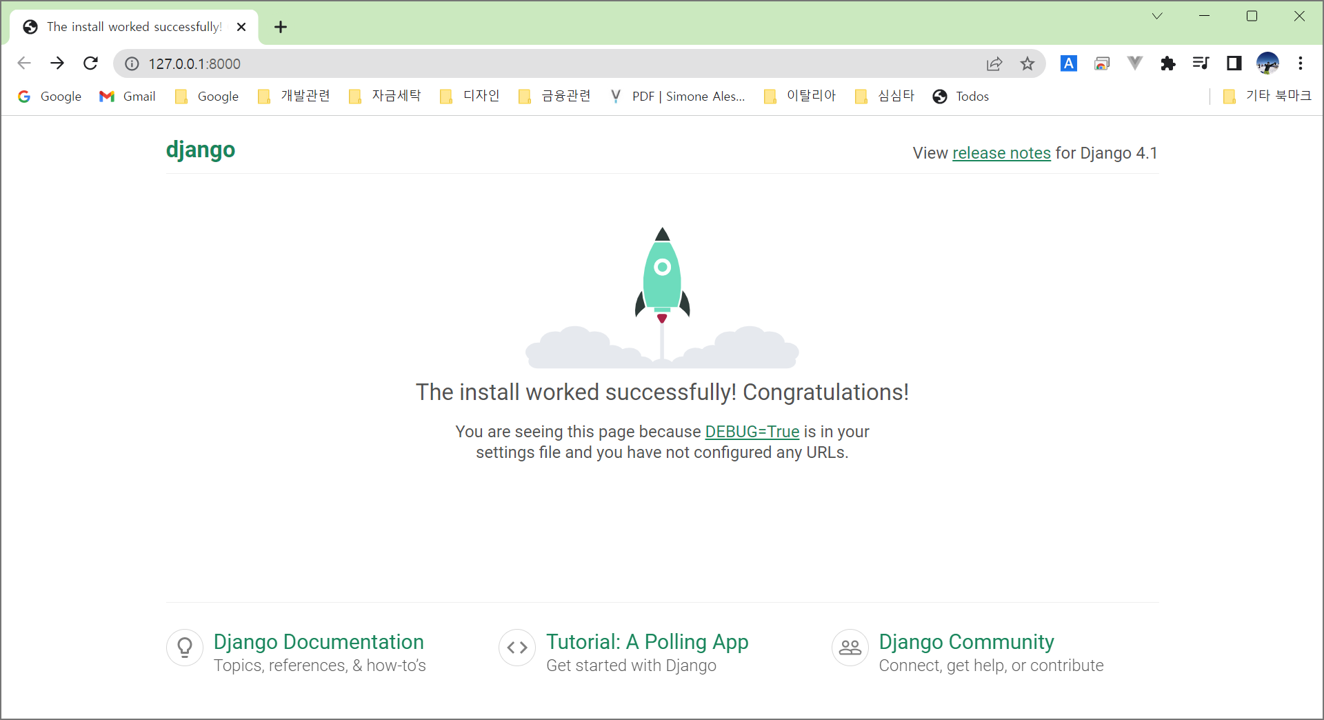 Successfully installed asgiref-3.5.2 django-4.1.2 sqlparse-0.4.3 tzdata-2022.5