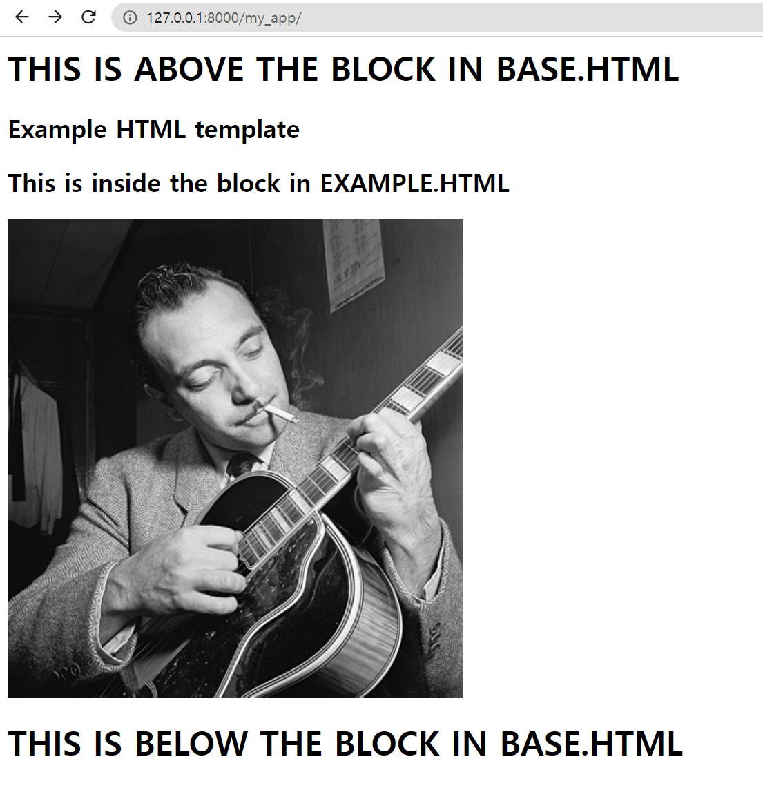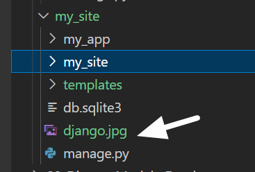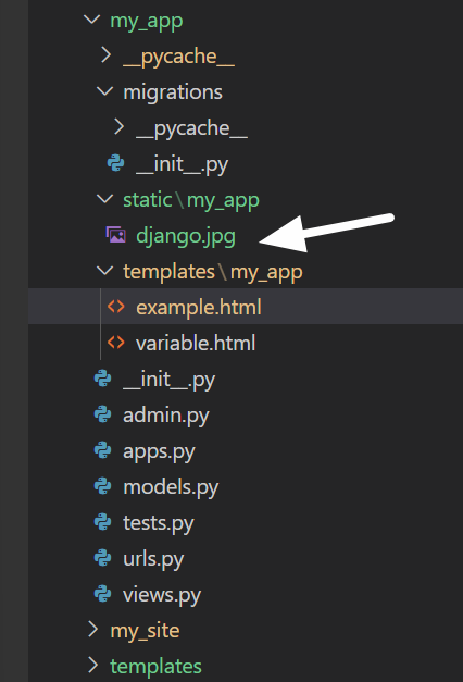 <img src='{% static "my_app/django.jpg" %}' alt = 'my image'> # <== 코드 추가