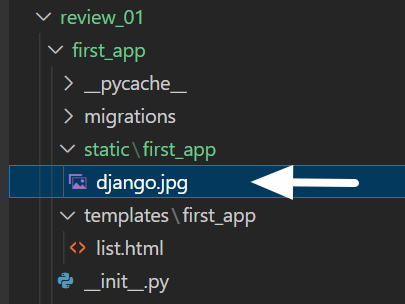 폴더 생성 및 이미지 저장 (./review_01/first_app/static/first_app/ 폴더에 저장)
