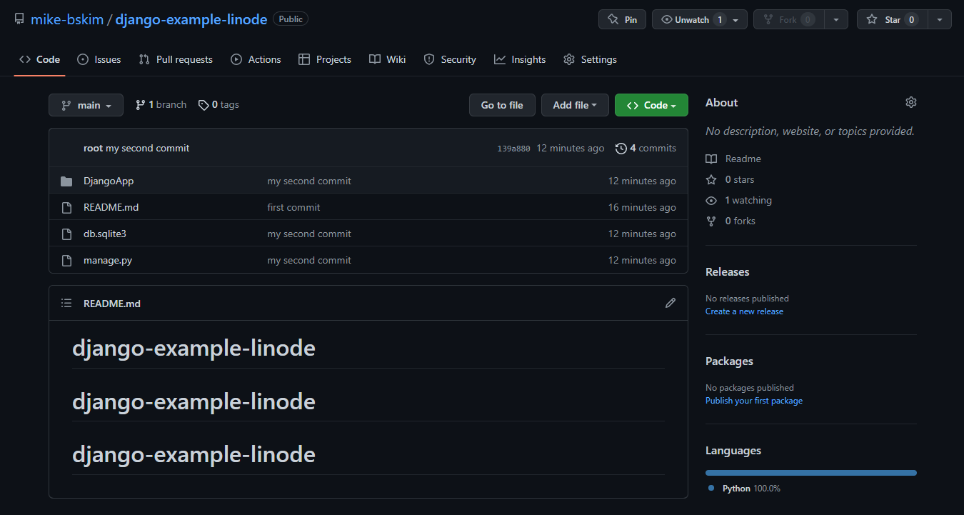 root@45-118-135-29:/var/www/DjangoApp# git remote add origin https://github.com/mike-bskim/django-example-linode.git
