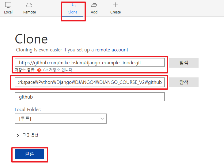 gitHub 를 로컬 컴퓨터에 복제(clone) 해보자.