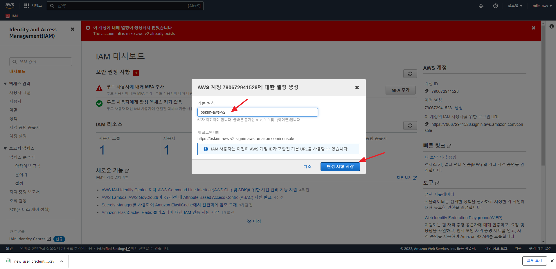 로그인 주소 : https://bskim-aws-v2.signin.aws.amazon.com/console