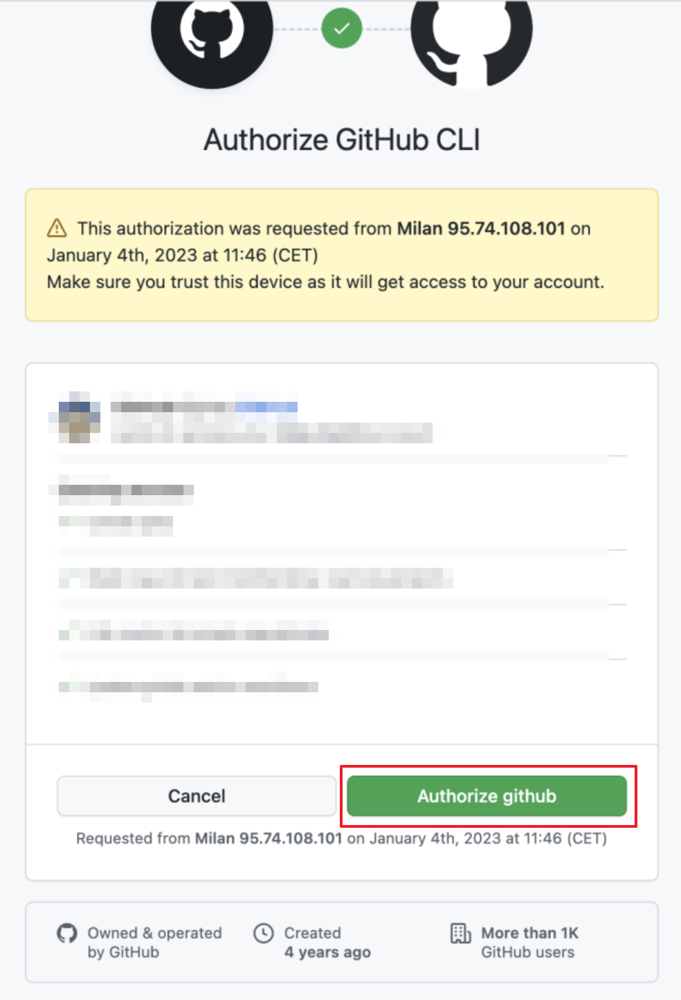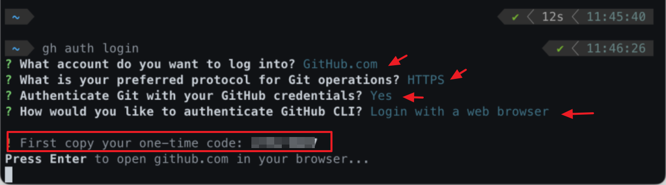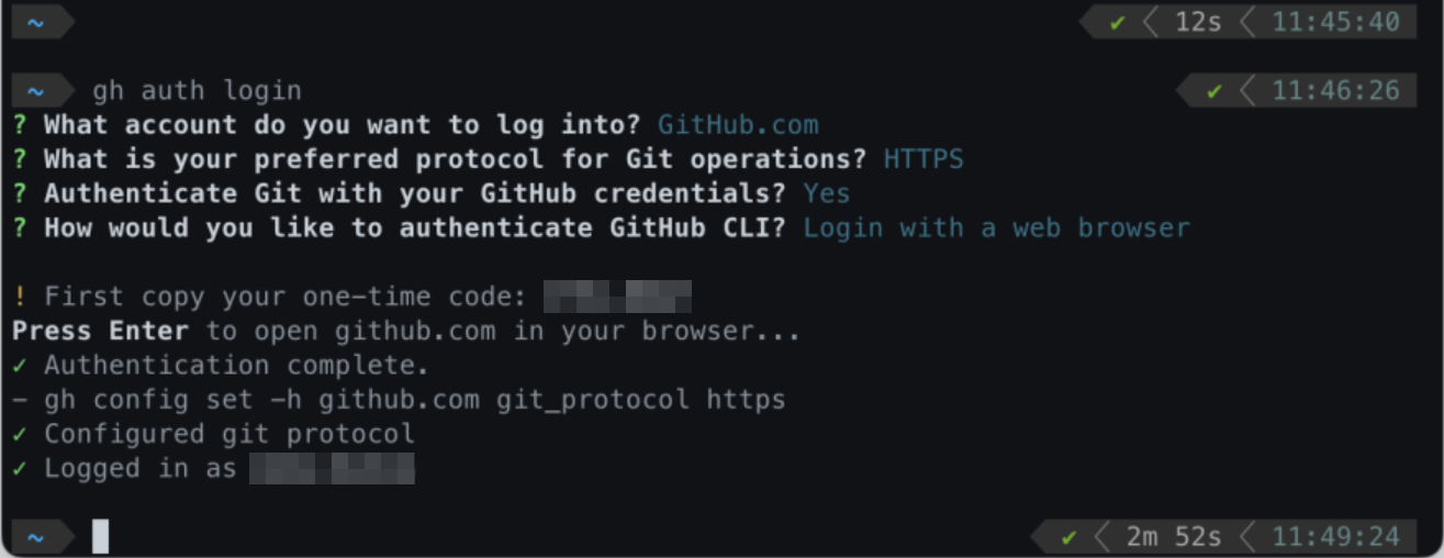 $ gh auth login