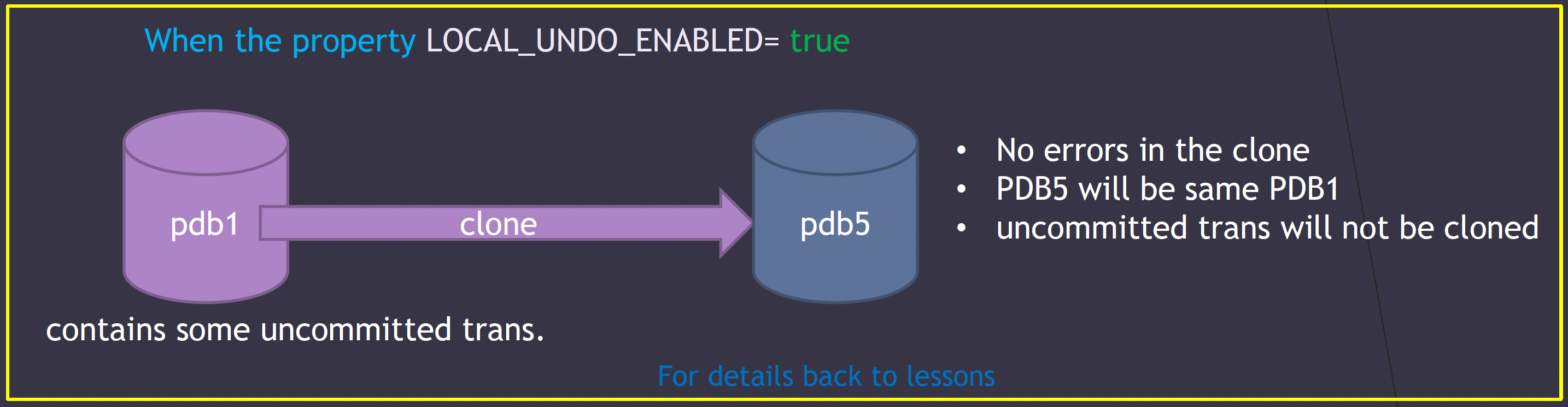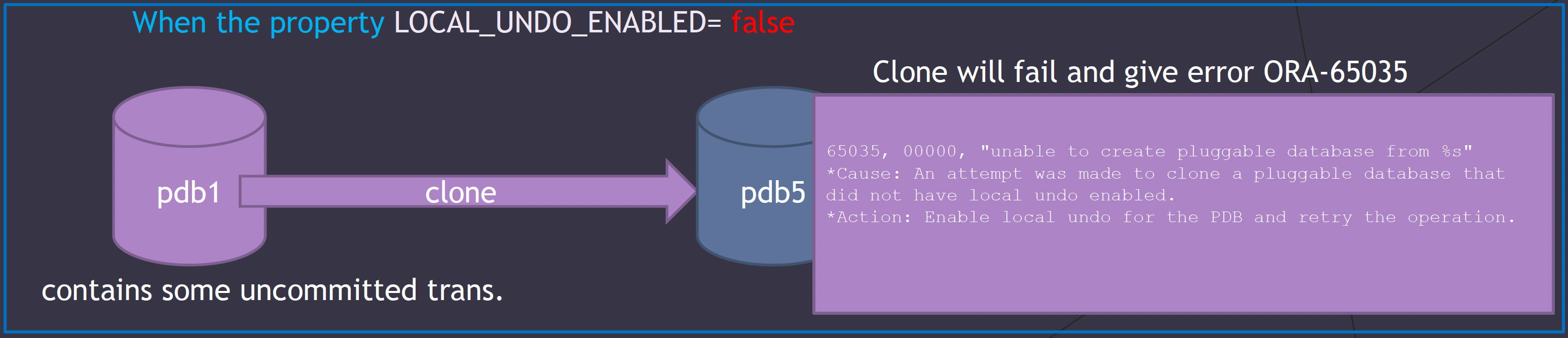 이유는 UNDO 테이블 스페이스를 공용 모드로 사용할때는(모든 PDB에서 하나의 UNDO 를 공유), commit 완료되지 않은 transaction 이 있으면 복제할 수 없다.