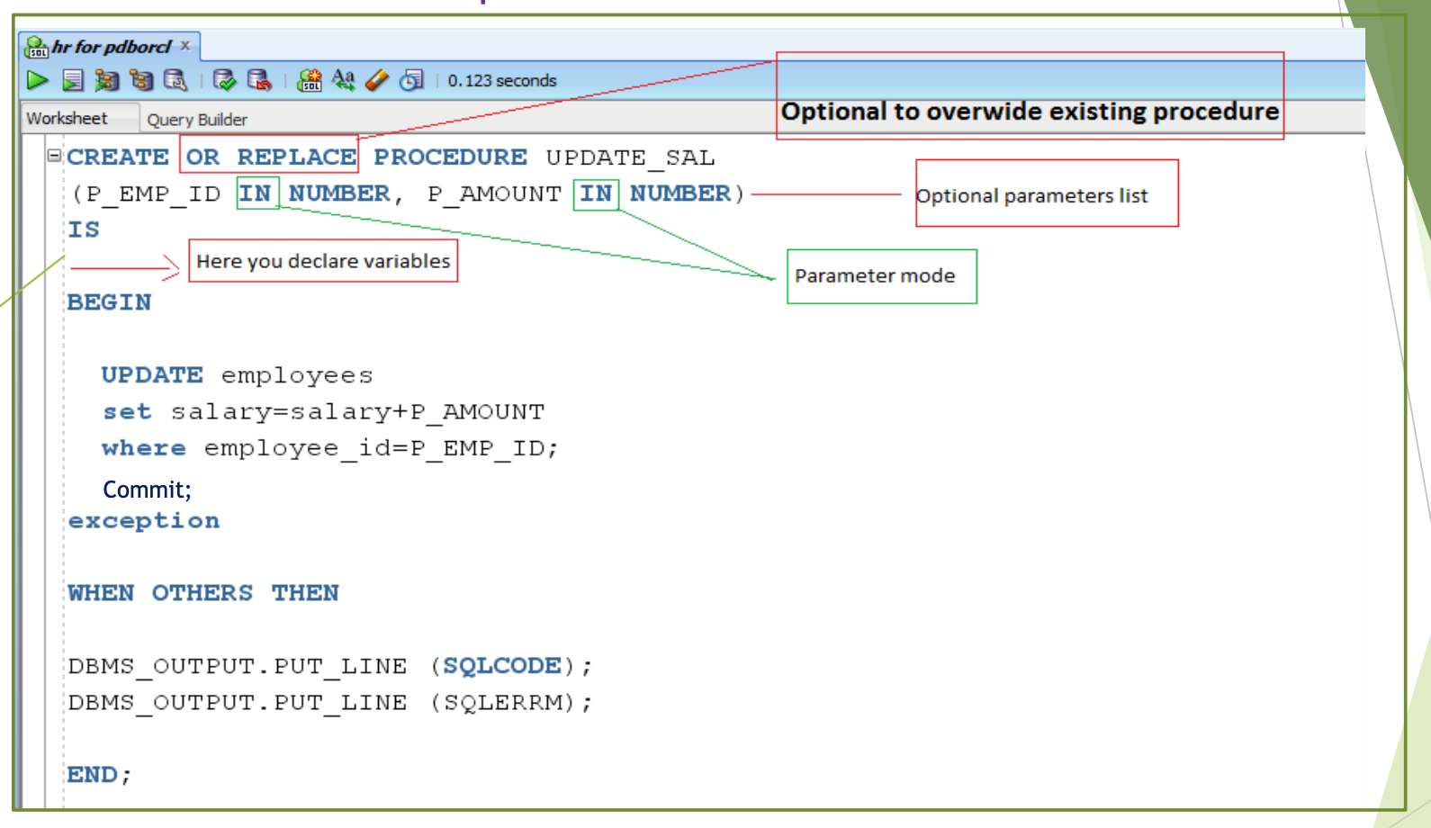 - You can declare and define a subprogram within either a PL/SQL block or another subprogram.
