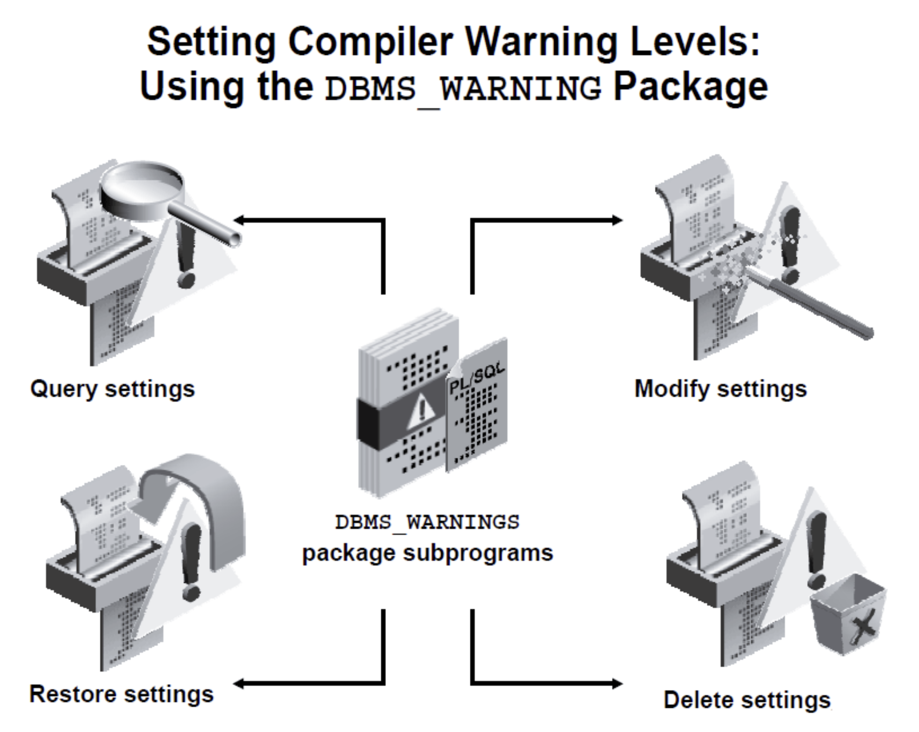 dbms_warning.add_warning_setting_cat('SEVERE', 'ENABLE', 'SESSION');