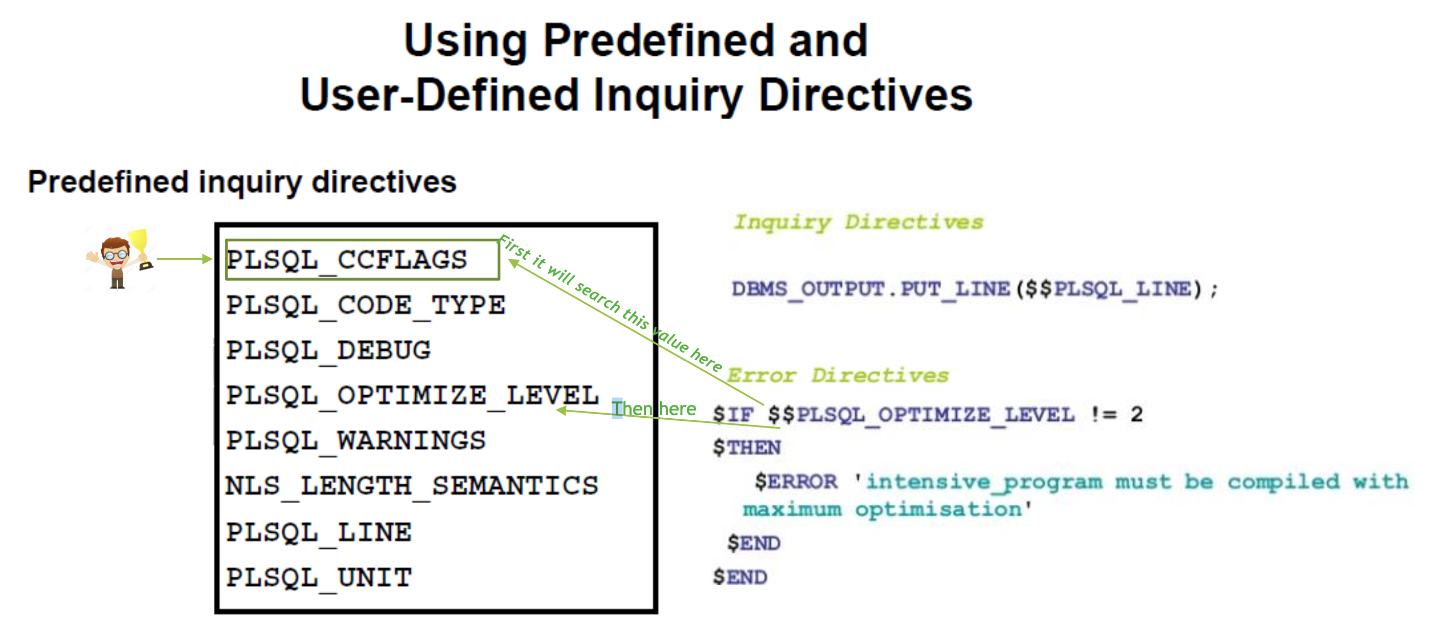 --아래처럼 $$로 접근하면 plsql_ccflags에서 먼저 조회하고 있으면 불러오고 없으면 name 컬럼에서 찾음