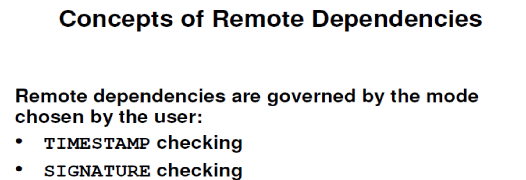 --There are 2 dependencies modes TIMESTAMP(default) and SIGNATURE